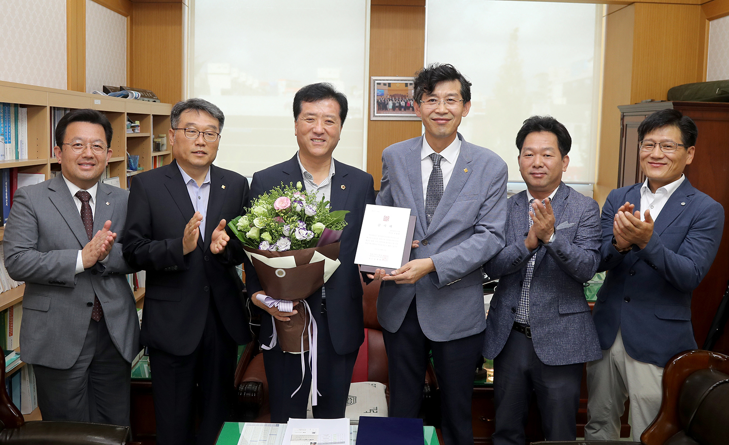 ▲대전시 의회 조원휘의원이 23일 이 지역 건축사회로부터 건축문화발전과 건축경기 활성화에 기여한 공을 인정받아 감사패를 받았다(사진제공=대전시 의회)