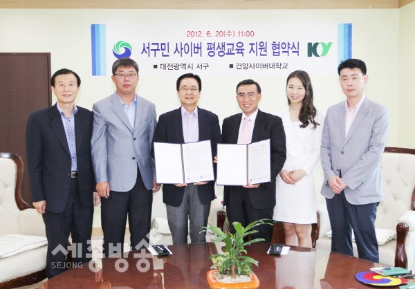 대전시 서구(구청장 박환용)는 지난 20일 서구청 다목적실에서 지역주민의 평생교육 활성화를 위해 건양사이버대학교(총장 김희수)와 ‘평생교육 지원 협약’을 체결했다.