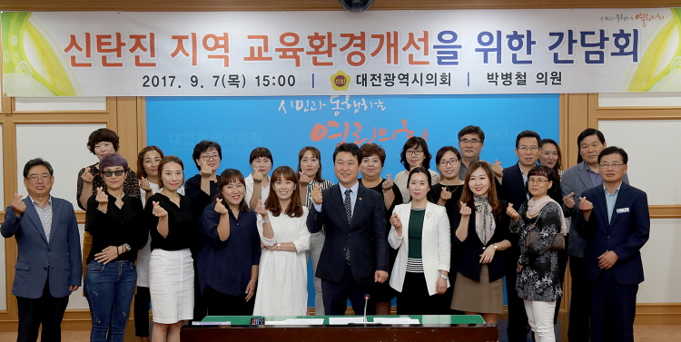 노후 교육시설개선, 안전한 통학로 확보 등 대전시의회 박병철 교육위원장은 7일 시의회에서 신탄진 지역에 위치한 15개 초·중학교의 학교운영위원장과 학부모회장 등이 참석해 교육환경 개선을 위한 정책간담회를 개최했다.(사진제공=대전시의회) 저작권자 © SJB세종TV 무단전재 및 재배포 금지 김환일 기자 다른기사 보기 페이스북 트위터 카카오톡 네이버블로그 구글+ URL복사 기사공유하기