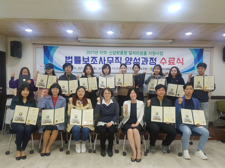 법률보조 사무직 양성교육은 2017년 고용부 주관 지역산업 맞춤형 일자리 창출 지원사업에 응모해 선정된 사업으로, 대전 서구의 특화사업 중 하나다.