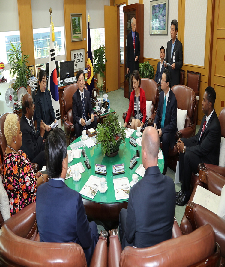 대전시의회 김경훈 의장은 23일 미국 매릴랜드 주 몽고메리 카운티 아이크 레게 시장 등 43명의 대표단을 접견하고, 앞으로 대전시의회와의 우호교류 방안 등을 논의했다고 밝혔다.