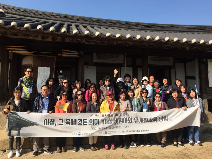 대전 동구 용운도서관은 25일 세종에 위치한 비암사와 유계화 가옥으로 이어지는 '길 위의 인문학'세 번째 탐방에 나섰다고 밝혔다.