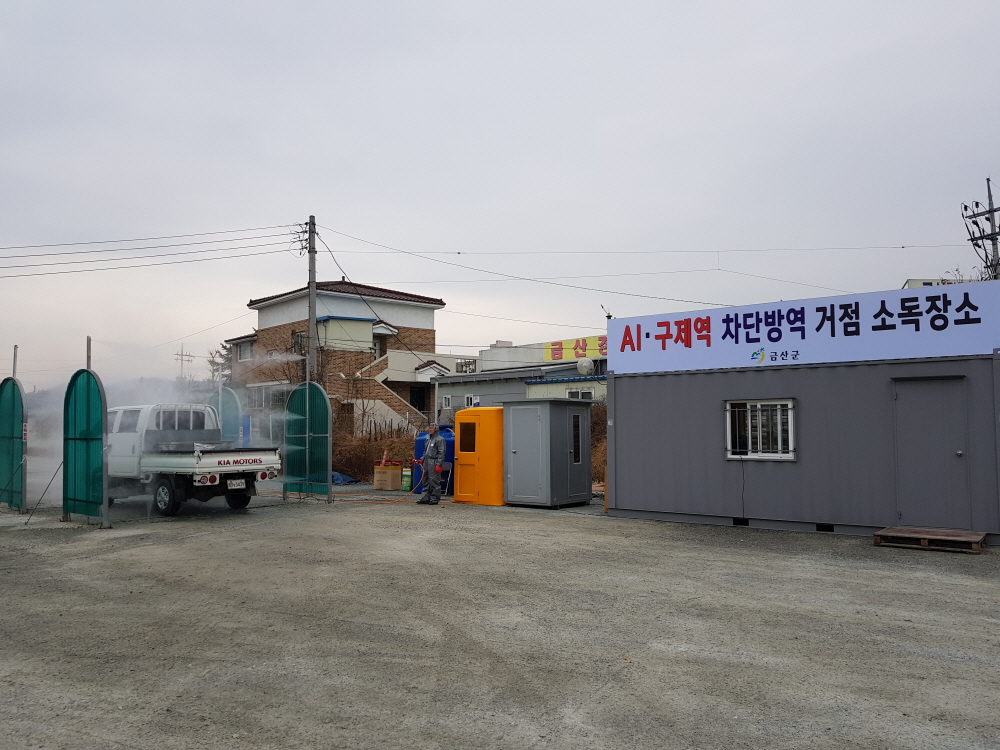 AI 위기 경보단계가 주의단계에서 경계단계로 격상되면서 금산읍 구, 가축시장 내에 거점소독시설을 설치, 2인1조 3교대로 24시간 운영하는 등 특별방역활동에 들어갔다.