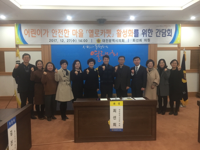 대전시의회 최선희 의원은 27일‘어린이가 안전한 마을『옐로카펫』활성화를 위한 정책간담회’를 개최했다(사진=대전시의회)대전시의회 최선희 의원은 27일‘어린이가 안전한 마을『옐로카펫』활성화를 위한 정책간담회’를 개최했다 저작권자 © SJB세종TV 무단전재 및 재배포 금지 김환일 기자 다른기사 보기 페이스북 트위터 카카오톡 네이버블로그 구글+ URL복사 기사공유하기