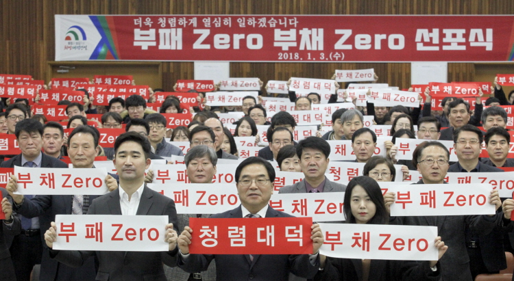 박수범 대덕구청장을 비롯한 직원 250여 명은 구청 대강당에서 무술년 새해를 부패제로·부채제로의 원년으로 삼아 이를 전통으로 이어가겠다는 의지를 대내외에 선포했다.