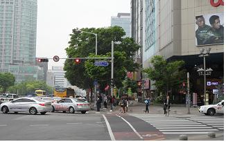 지난 1일 대전둔산 시외버스정류소 하차장소가 삼성생명 둔산빌딩(한국산업은행 )옆으로 이전했다.