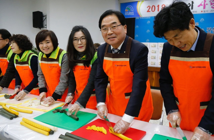 대전 대덕구자원봉사센터는 7일 구청 대강당에서 ‘설맞이 사랑의 떡국떡 나눔’ 자원봉사를 펼쳤다.