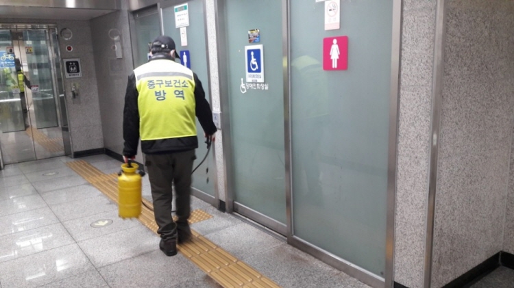 구는 9일까지 2개조로 소독반을 편성해 시외버스터미널, 지하철역, 전통시장 등 유동인구가 많은 지역을 대상으로 친환경 잔류소독과 살균소독을 실시한다.