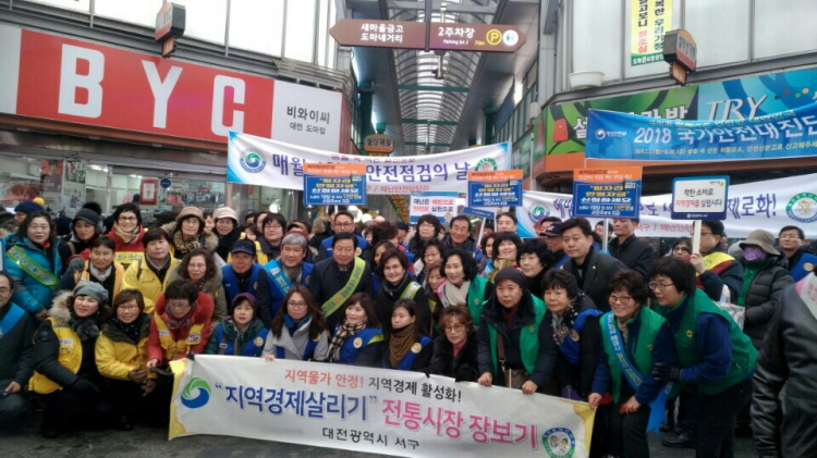 대전 서구는 12일, 설 명절을 맞이해 ‘물가안정 캠페인’과 ‘전통시장 장보기 행사’를 전개했다.