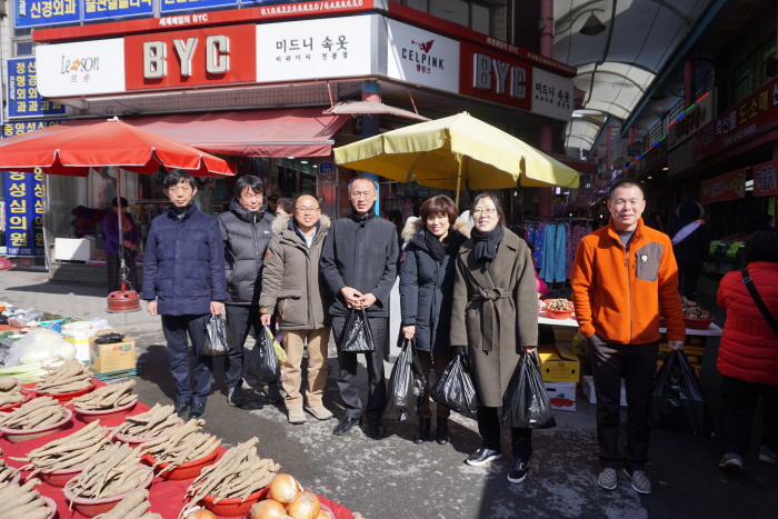 이날 장보기 행사는 스포츠 센터대형화재로 인한 아픔을 함께하고 침체된 지역상권 활성화차원으로 마련했다.