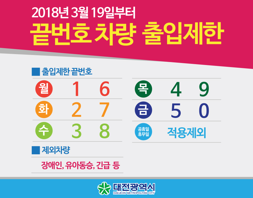 19일부터 대전시를 방문하는 민원인 차량은 끝번호 요일제 적용을 받게된다.