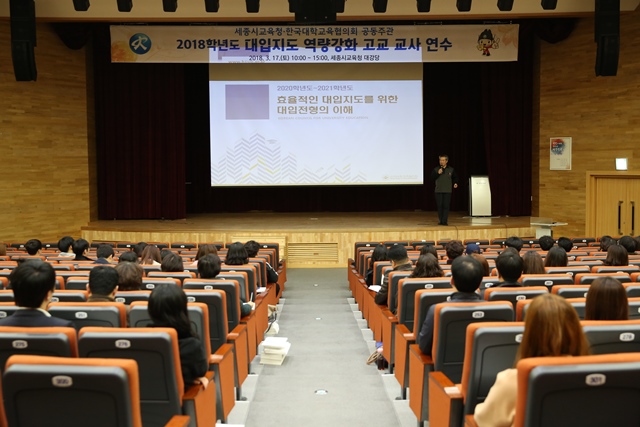 세종특별자치시교육청(교육감 최교진, 이하 세종시교육청)은 17일 세종시교육청 2층 대강당에서 한국대학교육협의회(회장 장호성)와 공동으로 관내 고등학교 담당교사를 대상으로 「2019학년도 대입지도 역량 강화 연수」를 실시했다.