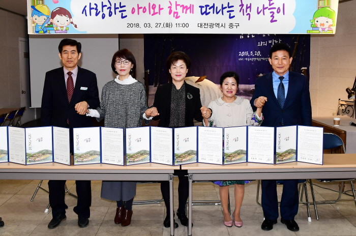 중구 어린이집연합회는 27일 계룡문고 회의실에서 계룡문고(대표 이동선)와 함께 어린이 독서문화운동사업 협약을 체결했다