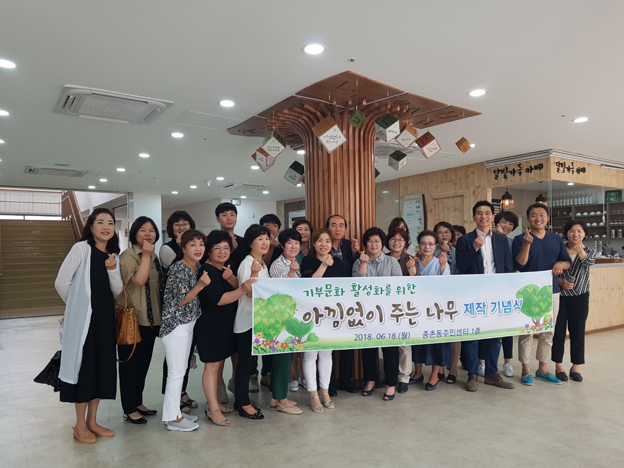 아낌없이 주는 나무의 윗부분은 종촌동 지형을 표현하고, 줄기는 기부자의 따뜻한 마음을 형상화해 행복한 종촌동을 담아냈다.