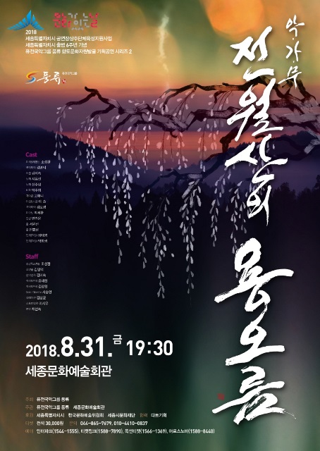 세종시공연장 상주단체인‘풍류’는 세종시 출범 6년째를 기념해 지역 향토문화 자원발굴 기획공연 일환으로 지난 4월 9일 세종시청 강당에서 세종시 전의면 출신 피리거장 김준현 명인 탄생 100주년기념 공연에 이어 이번에는 승천하지 못한 이무기 전설이 내려오는 전월산의 용샘과 버드나무 전설을 스토리텔링해 악가무 형식으로 발표한다.
