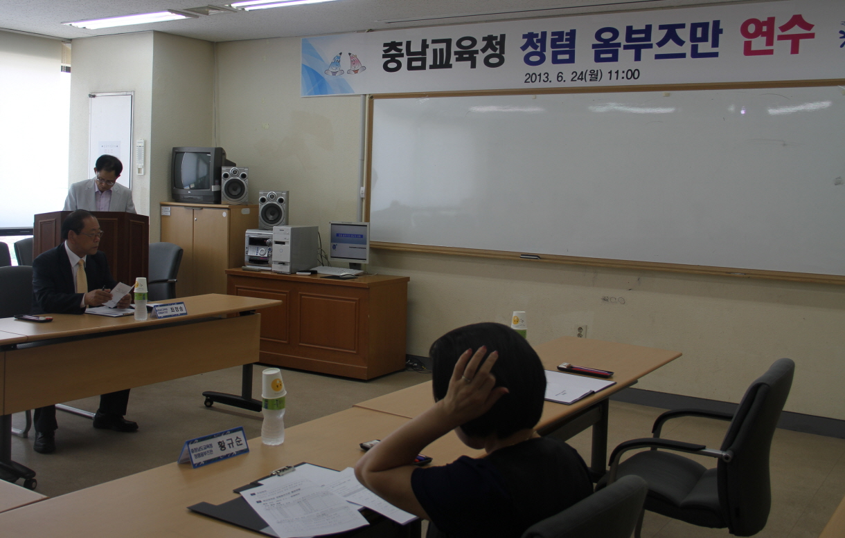 충남도교육청(교육감 권한대행 부교육감 전찬화)이 클린교육 실현을 위해 운영하고 있는 ‘청렴옴부즈만 제도’가 큰 호응을 얻고 있는 가운데 24일 충남학생교육문화원에서 충남교육청 청렴옴부즈만 연수를 가졌다.