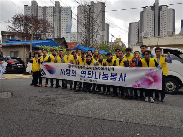 황인호 동구청장을 비롯한 (사)충우회 회원 30여명은 2,100장의 연탄을 직접 나르며 초겨울의 쌀쌀한