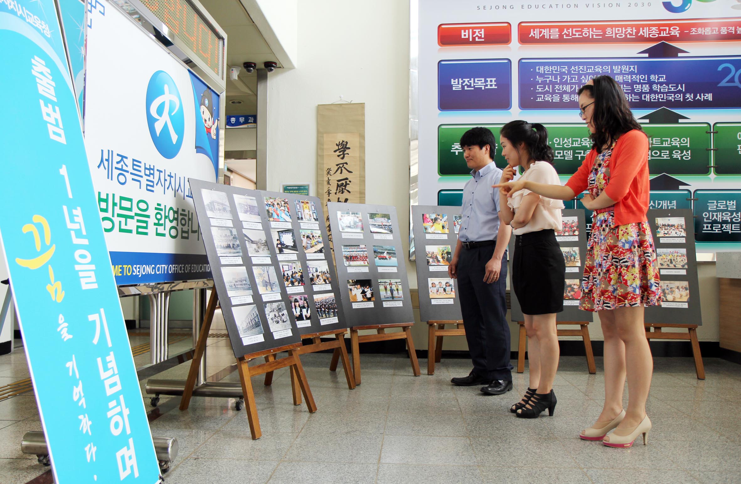 세종특별자치시교육청(교육감 신정균)은 청사 중앙현관에서 ‘과거와 현재, 미래 교육기록 한자리에’라는 주제로 출범 1주년 기념 세종교육 역사기록 전시회를 갖고 있다.