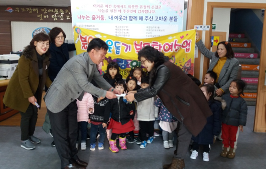 구포1동 지규태 동장은 “작년에 이어 올해도 샤론 어린이집에서 기부해주셔서 원장님, 학부모님, 어린이들 모두에게 감사하다. 어린아이들을 통해 우리 지역에 따뜻한 온기가 확산하는 좋은 계기가 될 것”이라고 말했다.