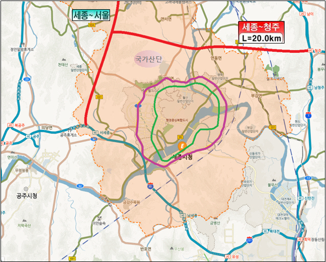 건설 될 세종-청주 고속도로는 총 4차선 20km 규모로 충남 당진에서 경북 영덕까지 동서를 가로지르는 동서 4축 완성과 세종시에서는 외곽 순환고속도로가 완성 되면서 이용 효과가 클 것으로 예상된다.