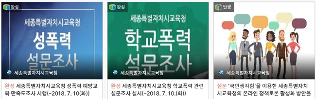 그간 세종시교육청에서는 ‘국민생각함’을 활용해 학생, 학부모, 시민, 관계공무원 등 세종교육공동체의 의견을 모아 교육정책 수립과 개선을 위한 자료로 활용해왔다.