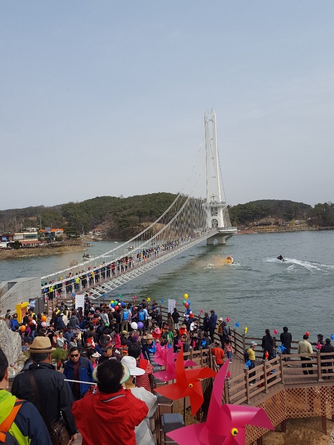 예당호 출렁다리 개통식이 있는 오늘, 많은 사람들이 이 곳을 방문했다.