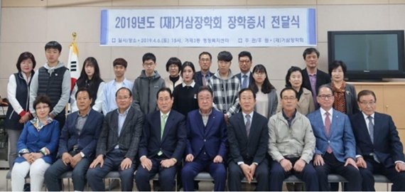 연제구 거제3동 (재)거삼장학회 김이균 이사장은 지난 6일 거제3동 행정복지센터에서 ‘2019학년도 장학증서 전달식’을 개최했다.