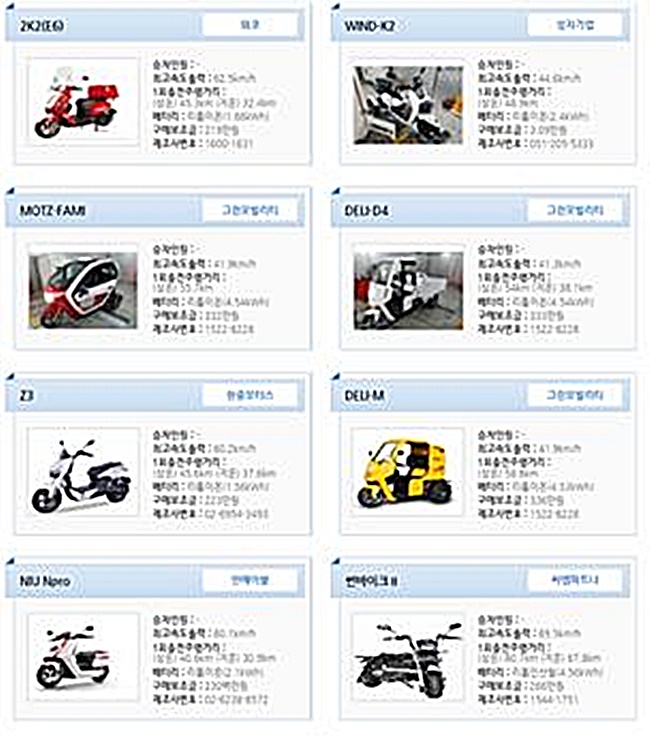 지원 차종은 쎄미시스코 R3G, 한중모터스 Z3, 그린모빌리티 발렌시아, 시엔케이 DUO, 대림자동차 EG300 등 정부가 지정한 18종으로, 전기차 구매 보조금 지원시스템(http://ev.or.kr)에서 확인 가능하다.
