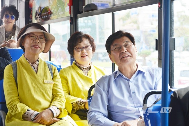 이춘희 세종시장이 4일 2019 공주 석장리 구석기축제 행사에 참석하기 위해 공산성에서부터 석장리박물관까지 세종-공주 순환형 시티투어를 이용했다.