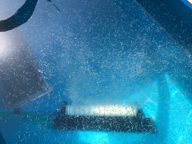 방류한 어린 대하는 도 수산자원연구소가 지난 4월부터 인공 부화를 통해 생산·관리해 평균 크기 1.2cm 이상으로 성장한 것이다.