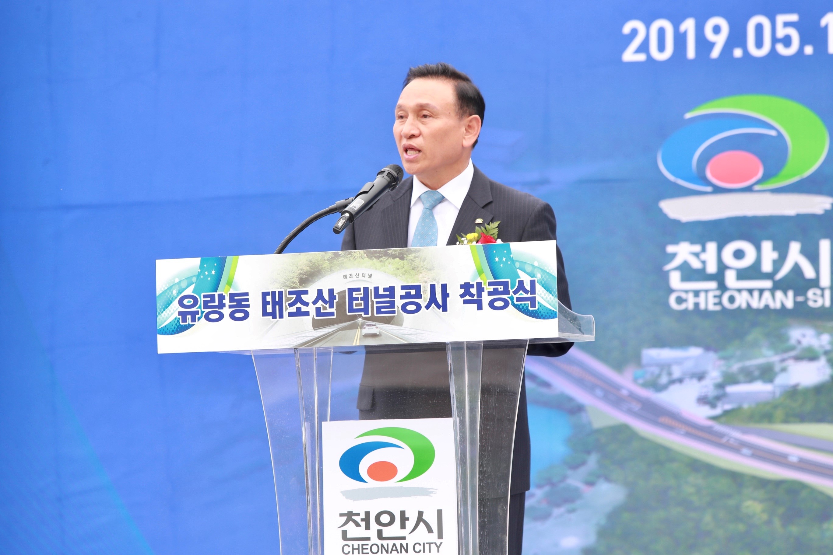 시는 13일 오후 3시 동남구 태조산 청소년수련원에서 구본영 시장을 비롯한 국회의원, 시의원 등 내빈이 참석한 가운데 유량동 태조산 터널 공사 착공식을 열었다.