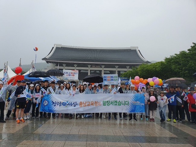 충남교육청(교육감 김지철)은 19일 천안 독립기념관 겨레의 큰마당에서 열린 3․1운동 100주년 기념 유관순 평화마라톤대회에 참가해 ‘청렴한 세상, 충남교육청이 앞장서겠습니다’라는 주제로 청렴캠페인을 실시했다.
