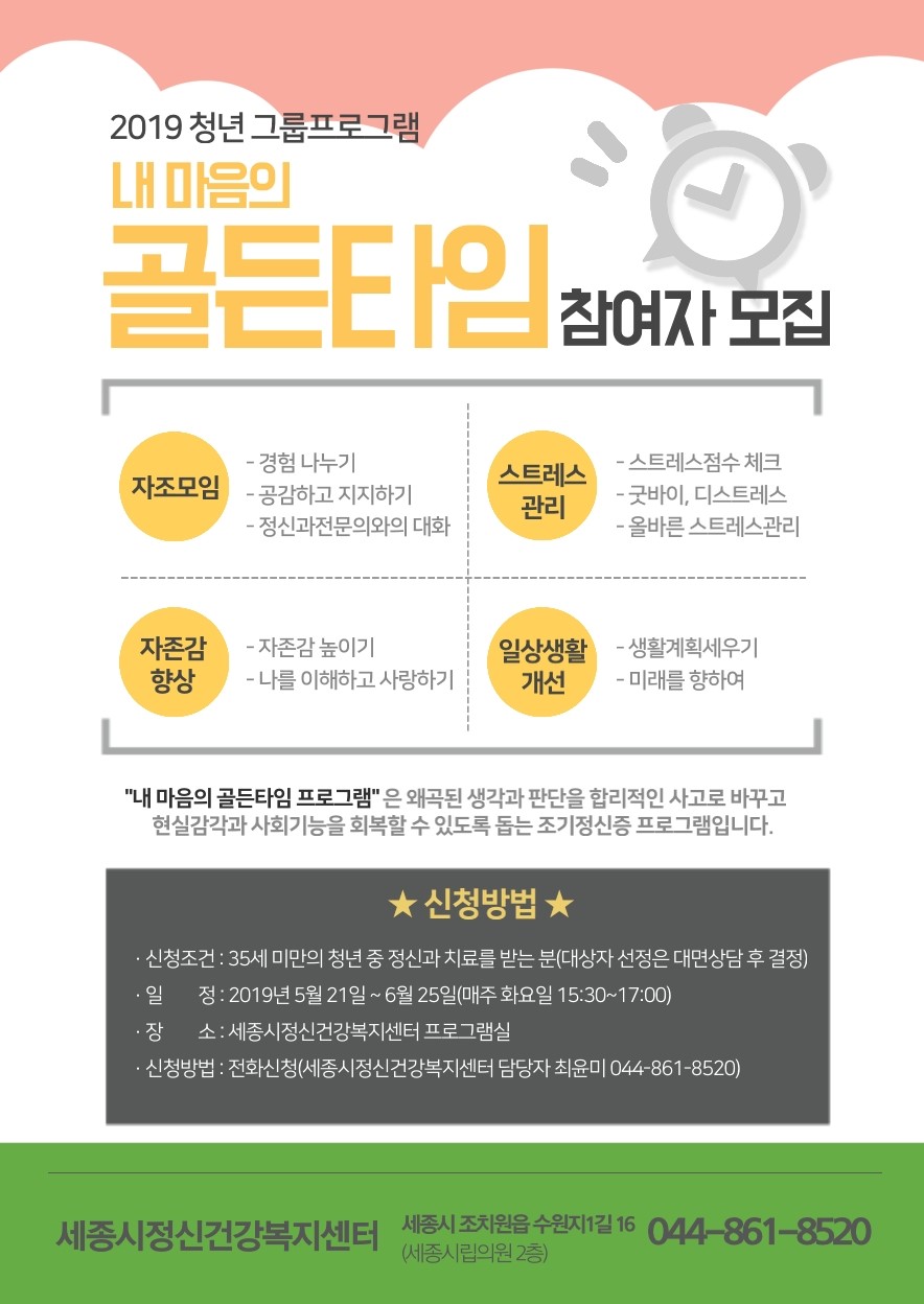 - 세종시정신건강복지센터, 5~7월 내 마음의 골든타임 운영 -