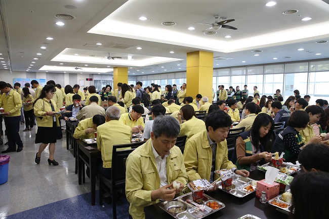 을지태극연습 최초상황 보고를 마친 후 도교육청 전 직원은 식당에서 건빵과 감자, 컵라면 등 비상식량 체험을 실시했으며, 이어 직속기관 전시전환 요원 90명은 전시직제 편성훈련을 진행했다.