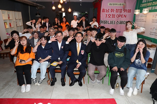 양승조 충남지사, 김돈곤 청양군수, 충남도립대 재학생 및 지역 내 청년 등 30여 명이 참석한 가운데 연 이번 토크쇼는 취·창업 카페 현판식, 기념촬영, 토크쇼 등의 순으로 진행했다.