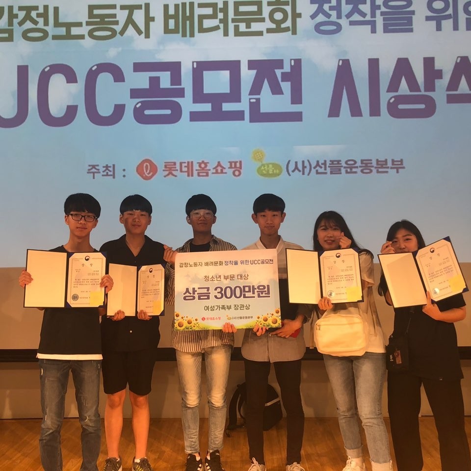 새뜸중은 지난 6월 1일 서울 서대문구 KT스퀘어 건물에서 진행된 「감정노동자 배려문화 정착 UCC 공모전」 시상식에서 새뜸중 3학년(당시) 유지연, 김준석, 이영서, 황승현, 강한구, 윤이안 학생과 이보라 담임교사가 대상을 수상하는 영광을 안았다고 전했다.