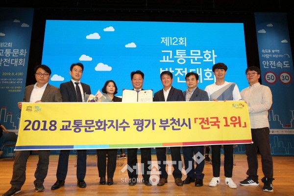 부천시는 6월 4일 서울 코엑스에서 열린 제12회 교통문화발전대회에서 교통문화지수 최우수상(전국 1위)에 선정돼, 수상 대상인 16개 지자체를 대표해 국토부장관상을 받았다.