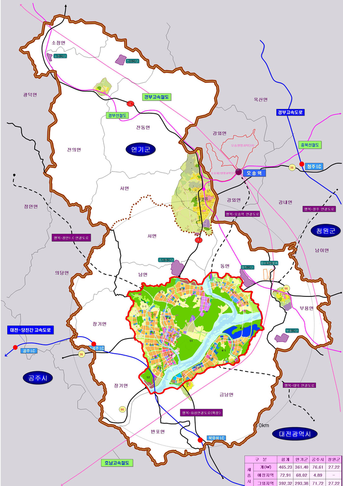 충남 연기군 전역과 공주시·청원군 일부가 편입돼 서울의 4 분의 3 규모의 ‘세종특별자치시’로 새롭게 탄생한 것이다.