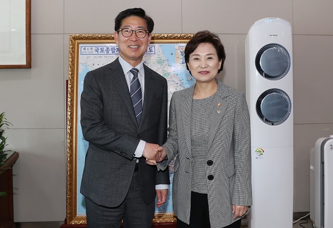 양 지사는 17일 허태정 대전시장과 정부 세종청사에 위치한 국토부를 방문, 김현미 장관을 만났다.
