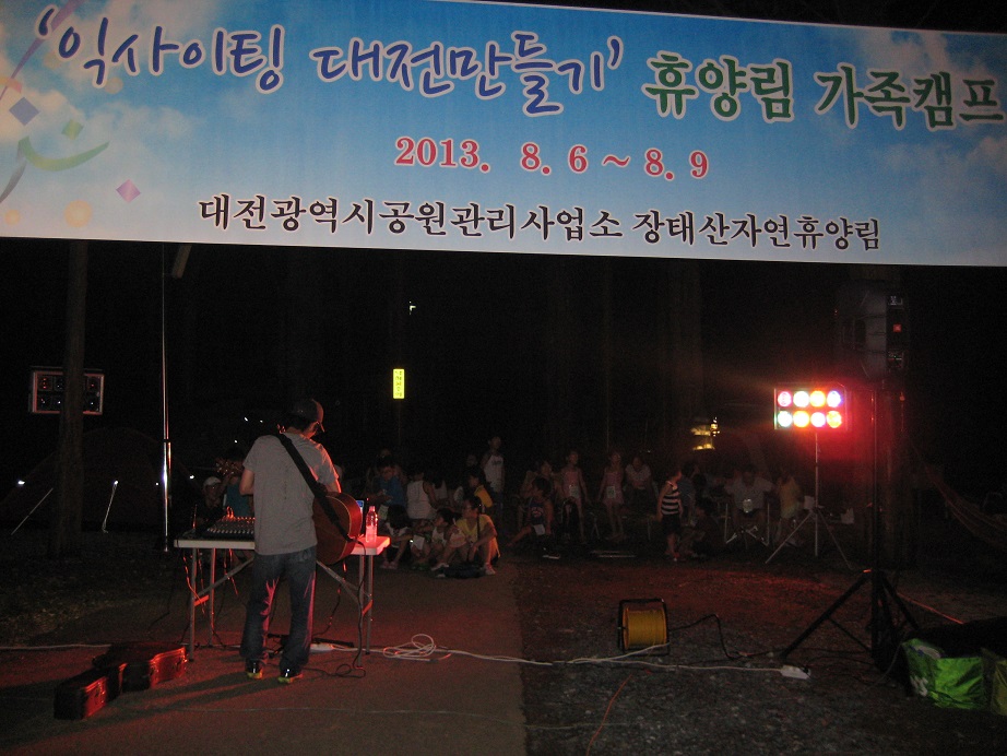 이번 휴양림 가족캠프행사는 대전 시내 거주 초등학생을 포함한 가족들이 시 홈페이지 홍보를 통해 선착순 접수하여 30가족 120여명이 참여하는 행사로 산림골든벨, 천체학습, 가족화합 레크레이션, 장태산 알기 및 숲체험, 자연물을 이용한 만들기체험 등 흥미롭고 다채로운 체험행사가 펼쳐졌다.
