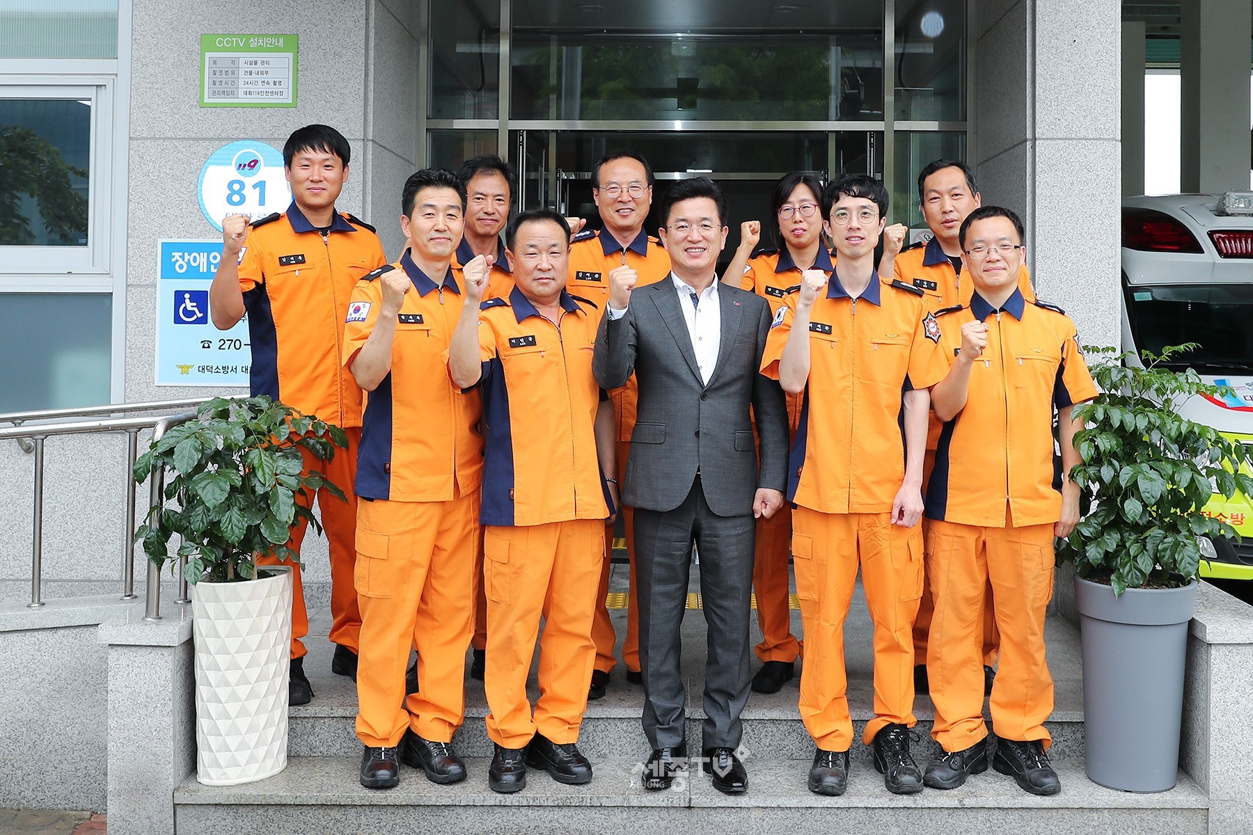 이어 대화119안전센터를 방문한 허 시장은 시민의 안전을 위해 최선을 다하는 소방공무원의 노고를 격려했다.