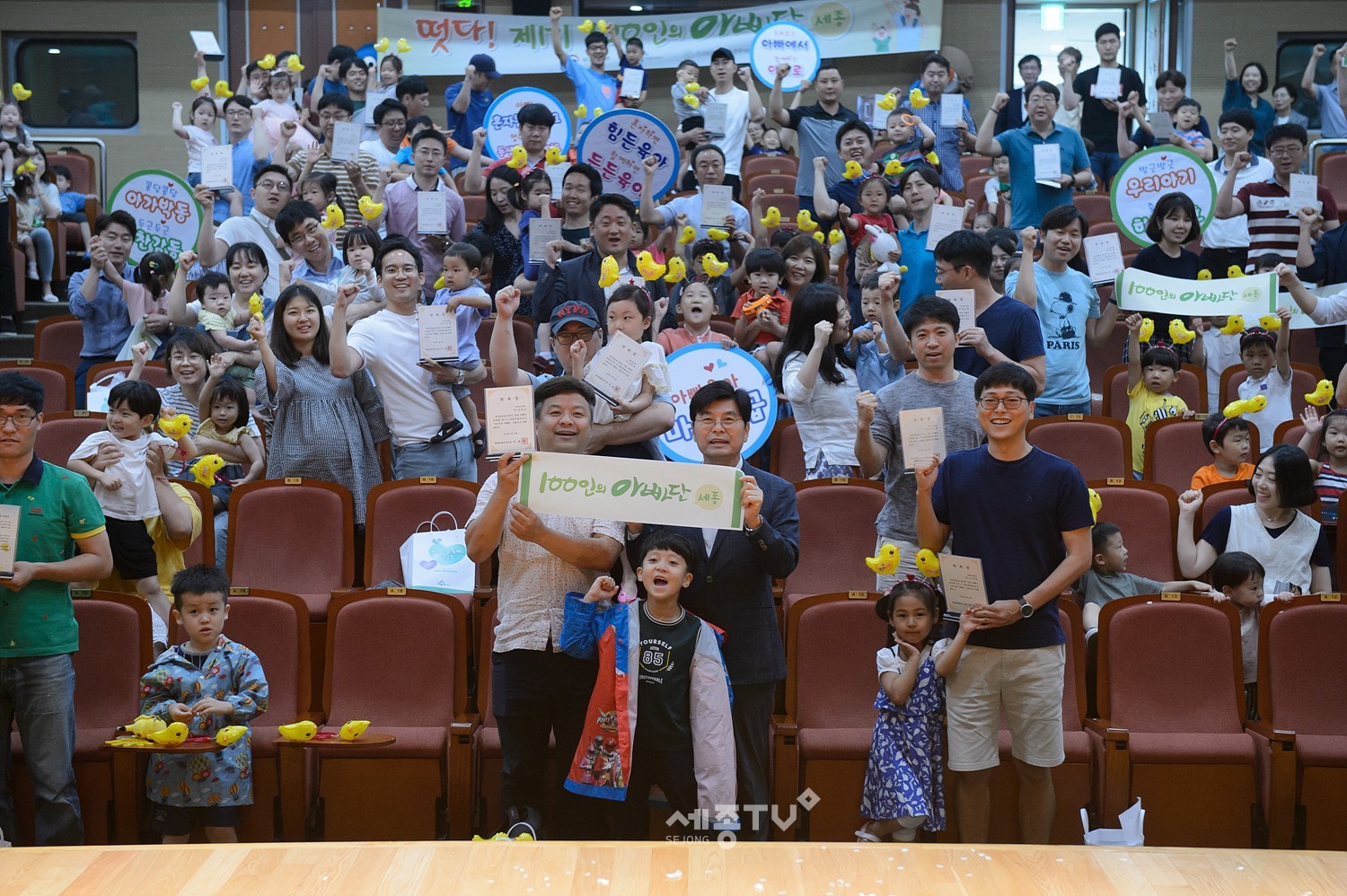 세종특별자치시(시장 이춘희)는 29일 시청 여민실에서 세종시 내 3∼7세 자녀를 둔 아빠 120명과 자녀들이 참가한 가운데 ‘제1기 세종 100인의 아빠단 발대식’을 개최했다고 밝혔다.