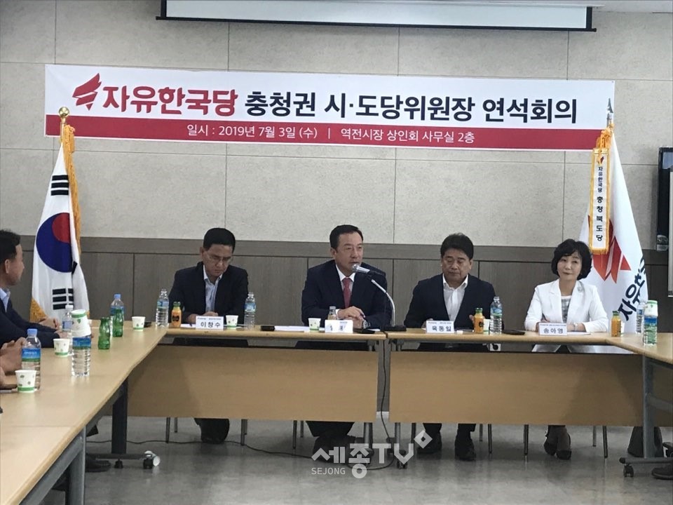 자유한국당 충청권 시·도당위원장(엄태영 충북도당위원장, 이창수 충남도당위원장, 육동일 대전시당위원장, 송아영 세종시당위원장 직무대행)은 7월3일(수) 충북 제천에서 정례 회의를 개최하고 충청권 상생발전을 위한 다양한 의제를 논의했다.