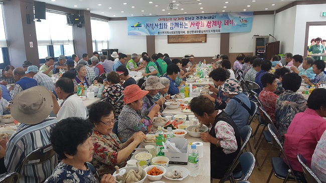 예산군봉산면은 초복을 앞둔 9일 봉산면주민자치센터에서 독거어르신 100여명을 초청해 삼계탕을 대접하는 ‘사랑의 삼계탕데이(day)’를 진행했다.