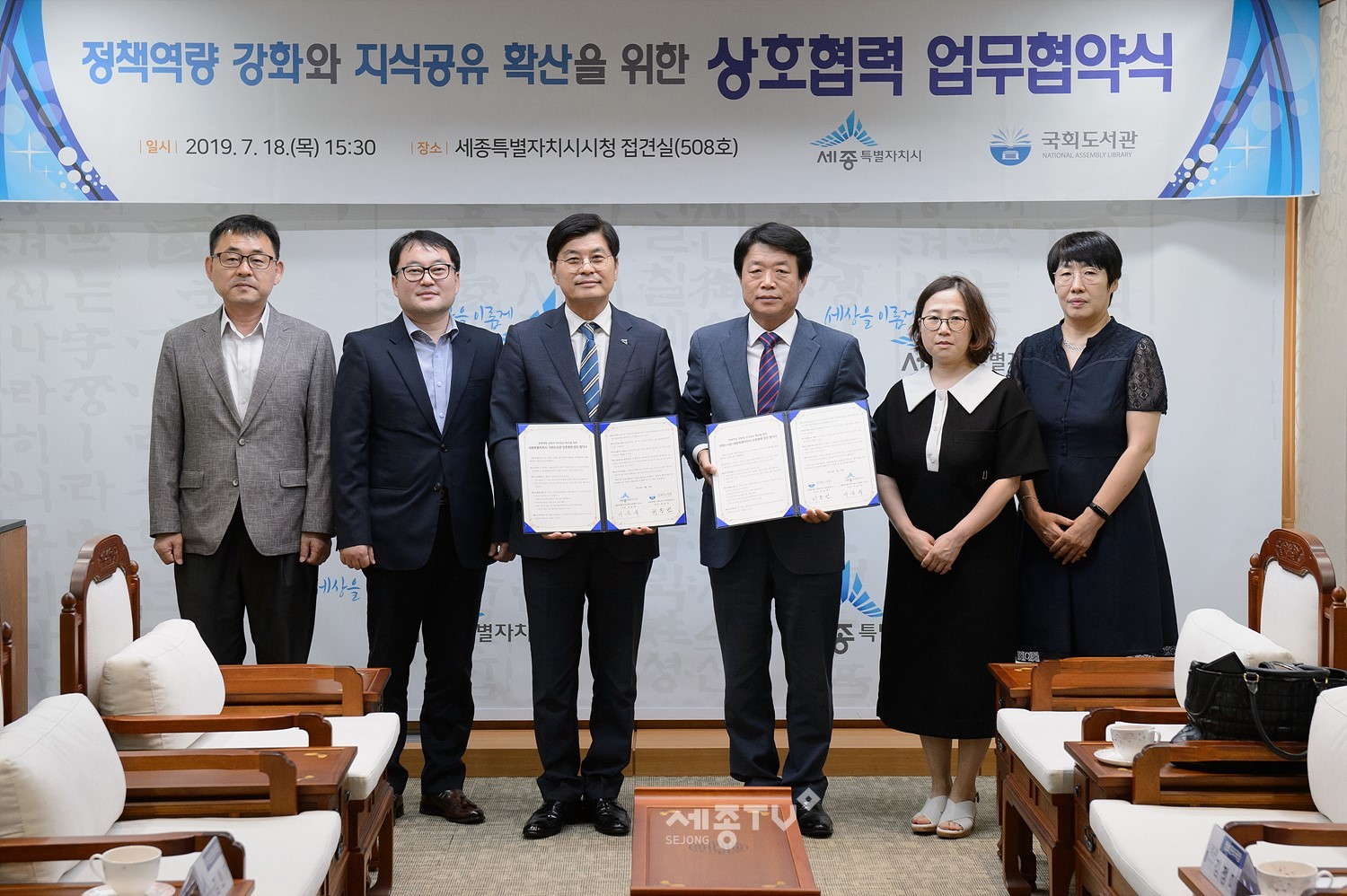 이춘희 시장은 18일 시청 에서 허용범 국회도서관장과 정책역량 강화와 지식공유 확산을 위한 업무협약을 체결했다.