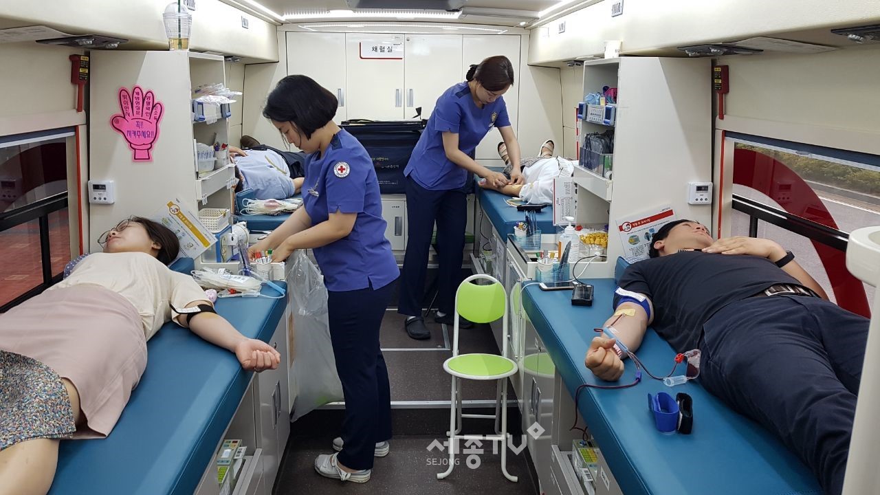 세종특별자치시교육청(교육감 최교진)은 19일 본청 주차장에서 ‘대한적십자사 대전·세종·충남혈액원’의 도움을 받아 이웃 사랑과 생명 나눔을 실천하기 위해‘사랑 나눔 헌혈의 날’을 운영했다고 밝혔다.