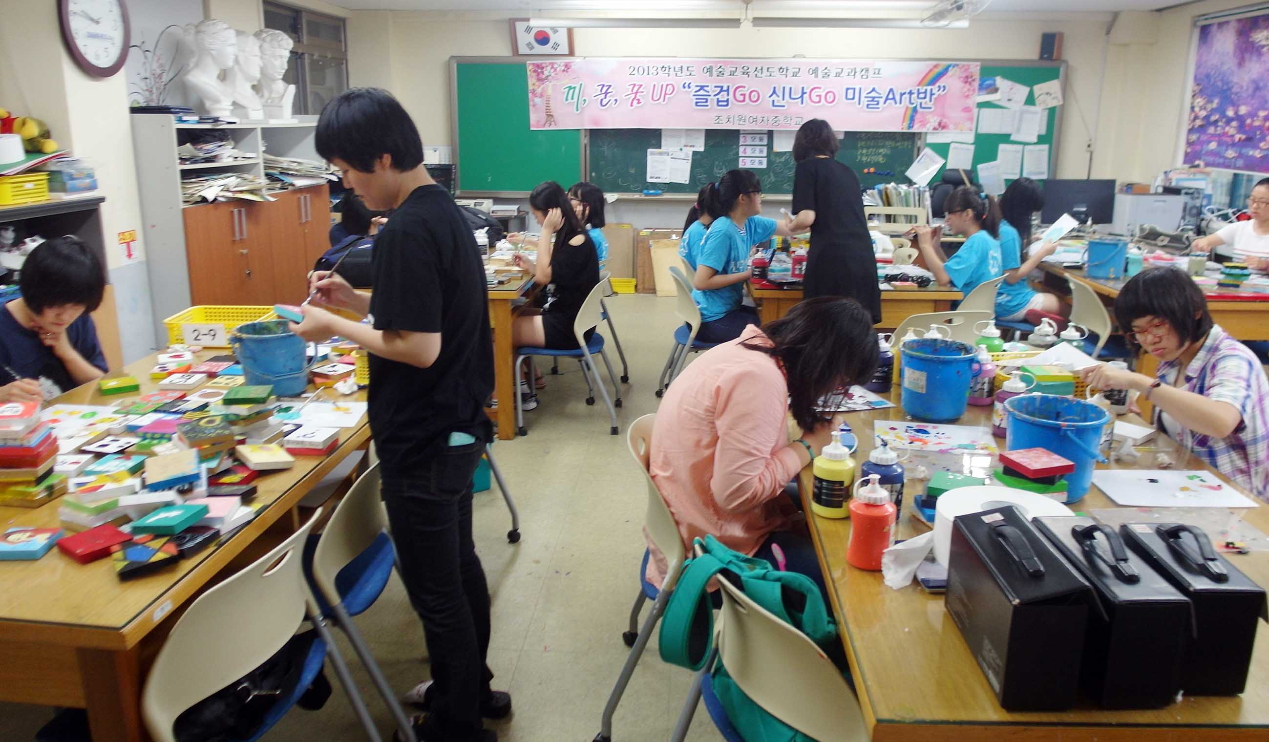 조치원여자중학교(교장 박경희)는 2013 예술교육선도학교로 선정됨에 따라 끼.꾼.꿈을 업(UP)시킬 수 있는 다양한 예술교육 체험활동 프로그램을 계획해 실시하고 있다.