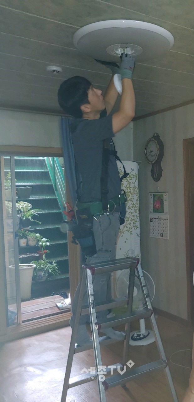 새빛LED조명(대표 민갑기)이 25일 세종특별자치시 전동면(면장 전만익) 내 취약계층 15가구를 방문, LED전등을 직접 설치해 주며 이웃사랑을 실천했다.