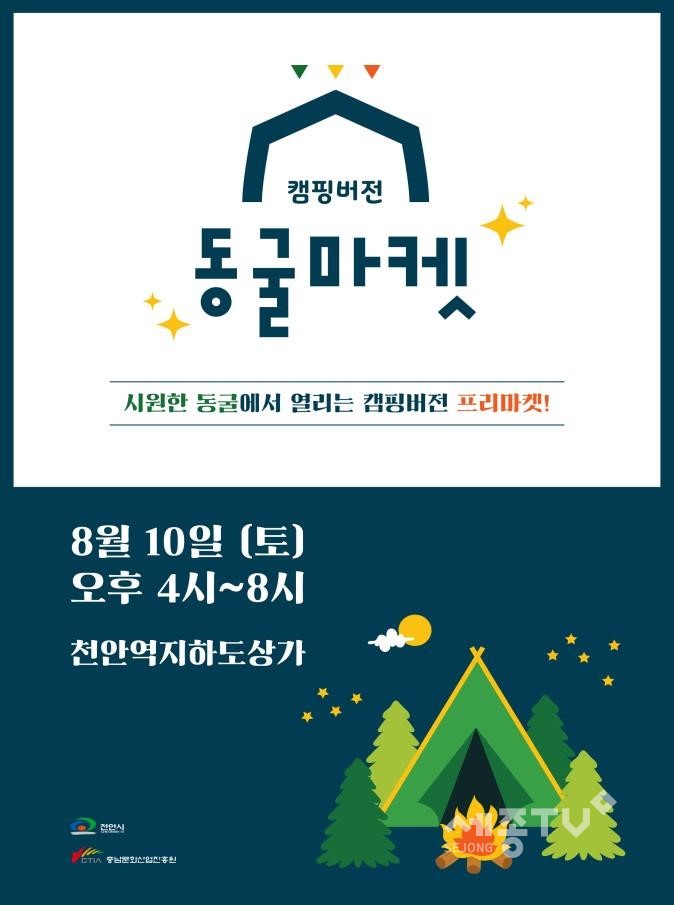 천안시와 충남문화산업진흥원은 오는 10일 오후 4시부터 8시까지 천안역 지하도상가에서 ‘2019 동굴마켓 캠핑버전’ 행사를 개최한다.
