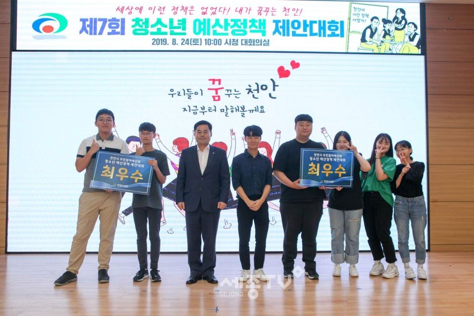 우수상은 ‘건강한 녹색도시 확충 프로젝트’를 발표한 천안청수고 ‘환경복지부’팀, ‘천안시 버스 앱 새길’을 발표한 ‘북일여고’ 팀이 선정 됐다. 선정된 팀은 9월 천안시 월례모임에서 수상하게 된다.